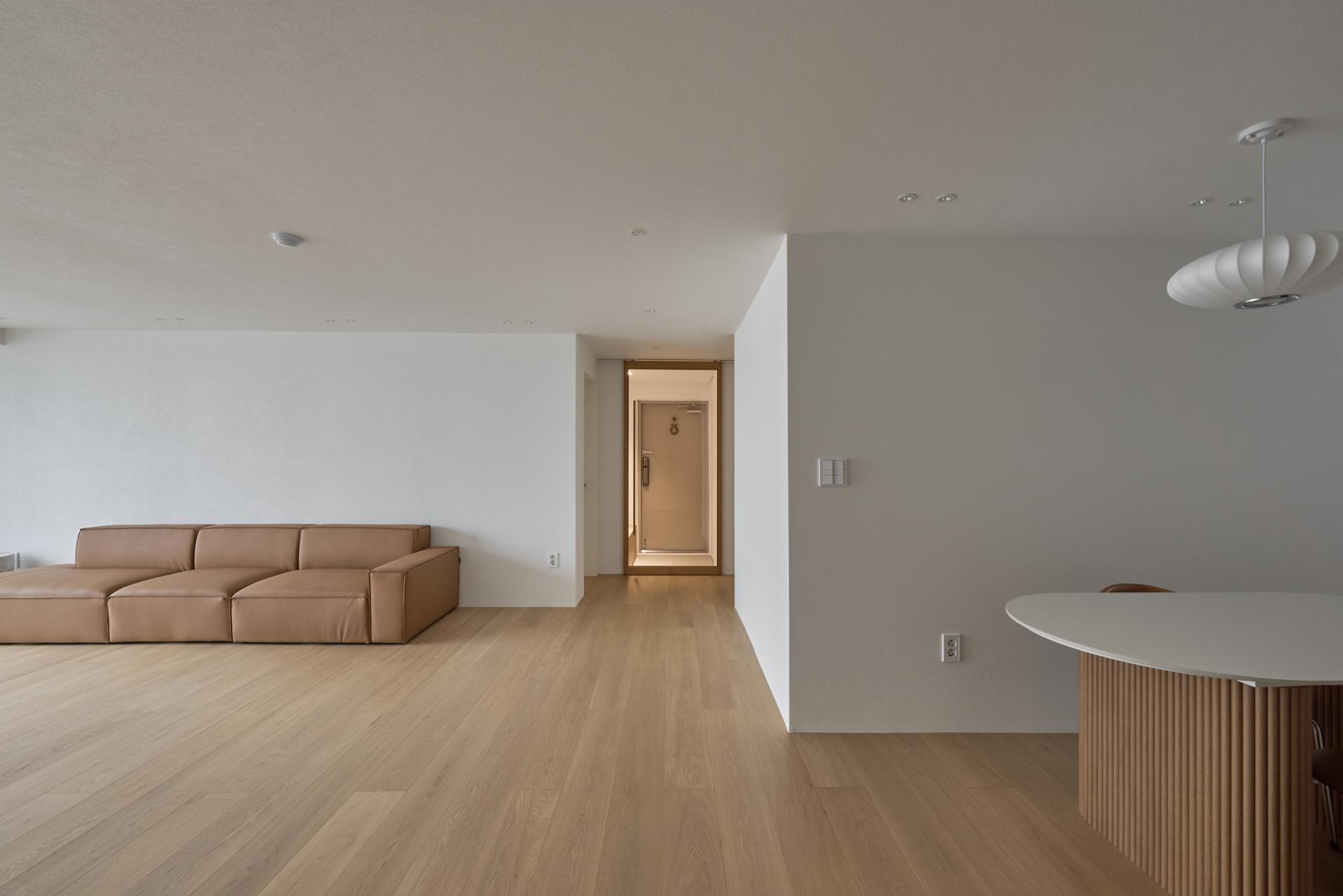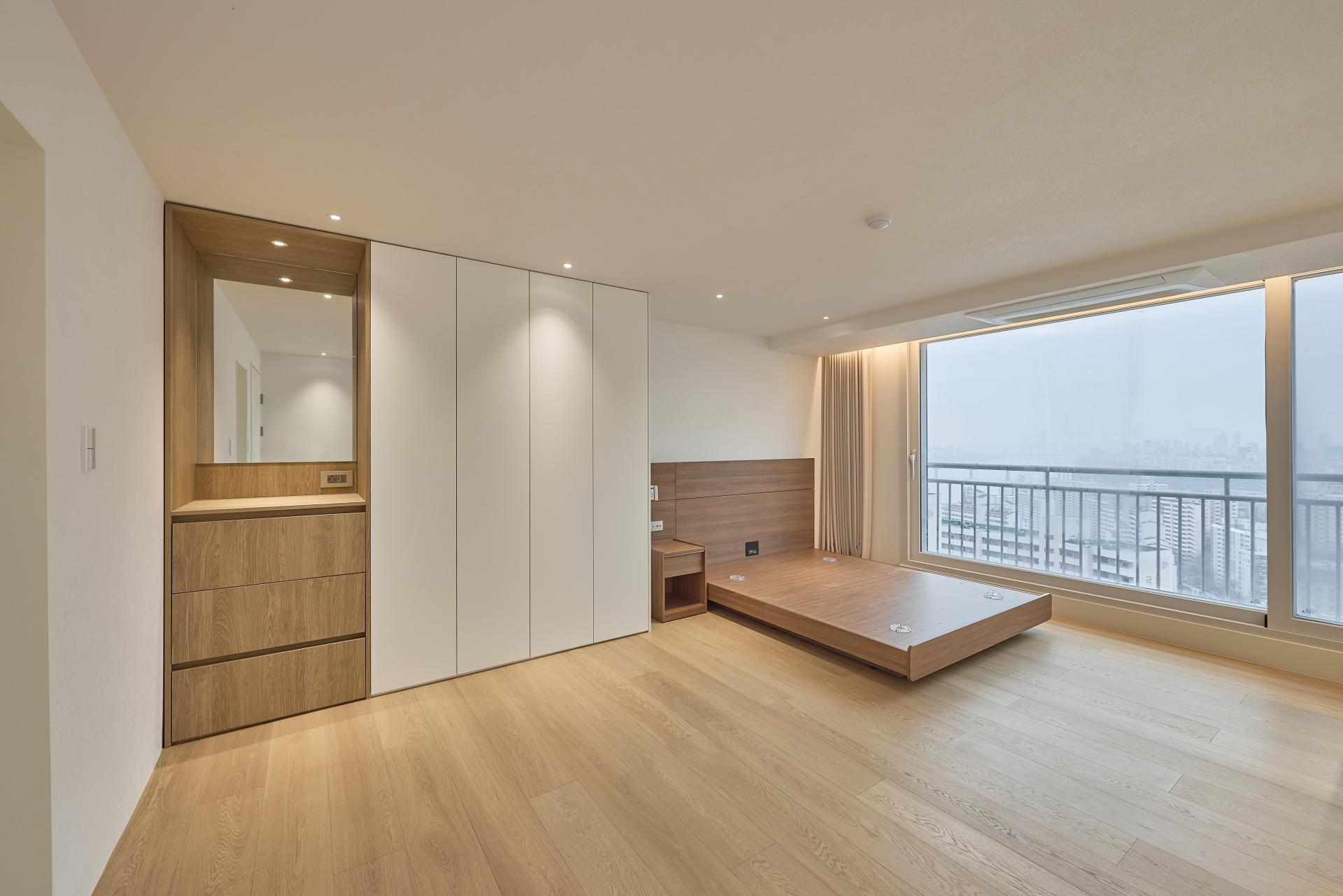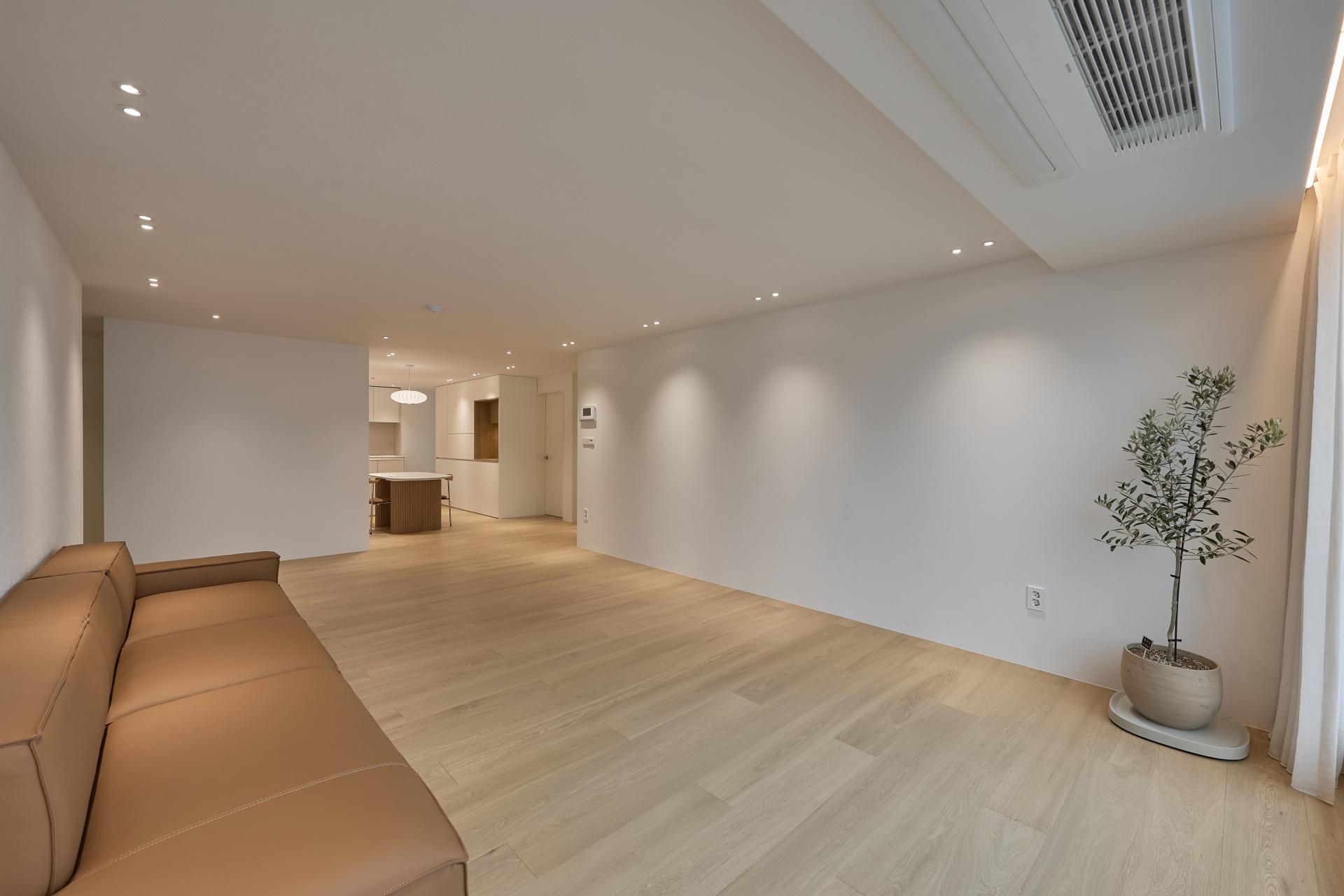이곳은 27년 된 옥수동 구축 아파트입니다. 올 철거 후 천장과 걸레받이 없는 무몰딩 인테리어를 진행했고,