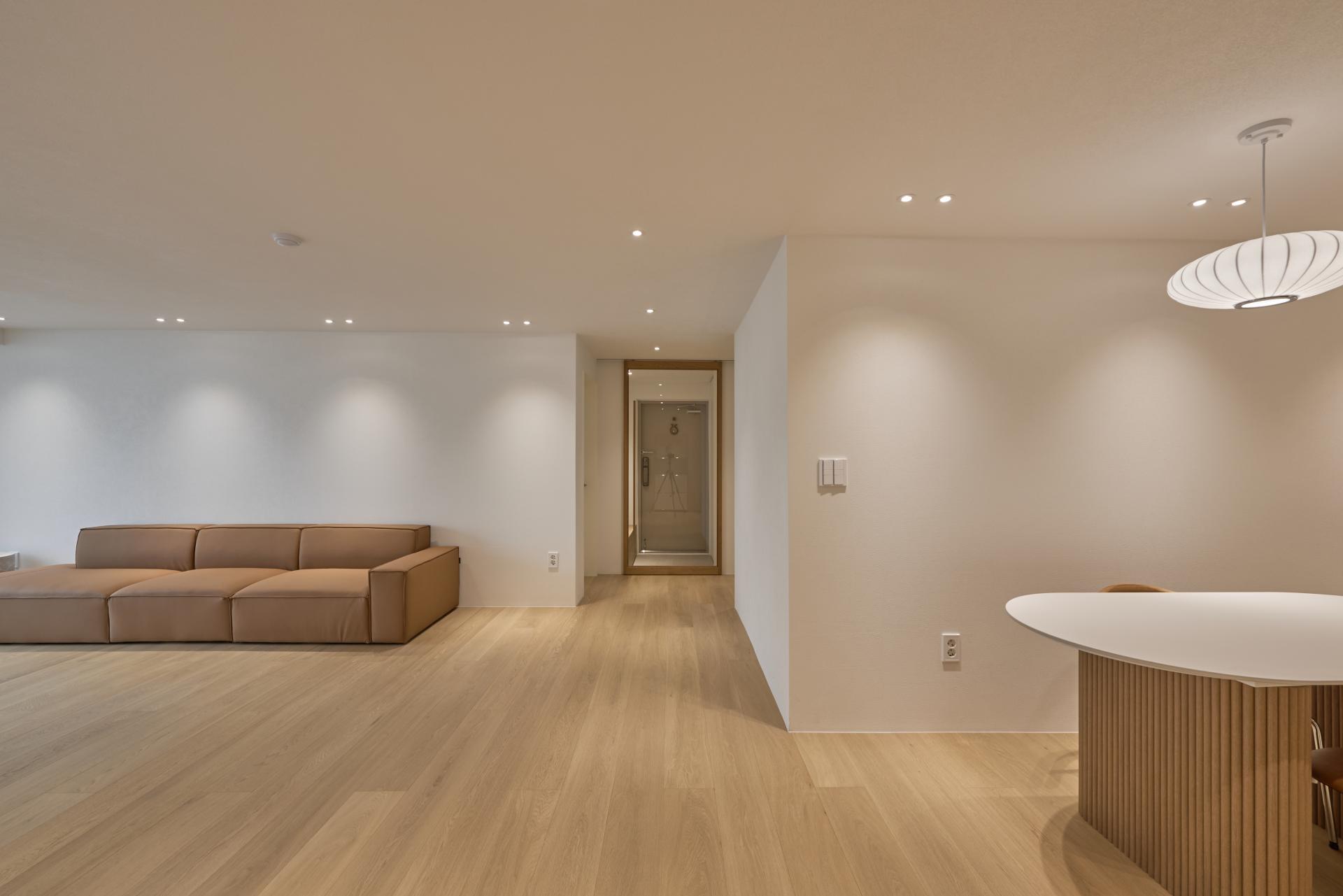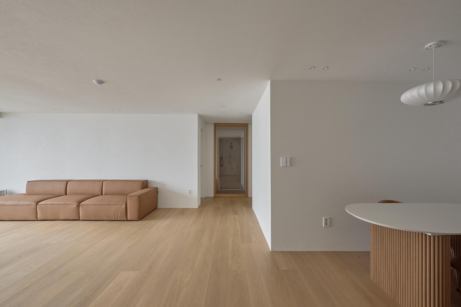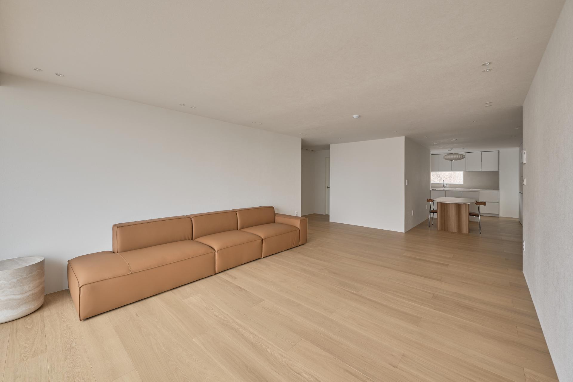 이곳은 27년 된 옥수동 구축 아파트입니다. 올 철거 후 천장과 걸레받이 없는 무몰딩 인테리어를 진행했고,