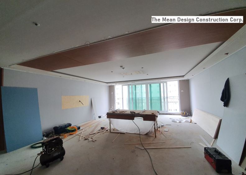 Point : 거실 실링팬 + 안방 커브드 벽체/ 템바보드