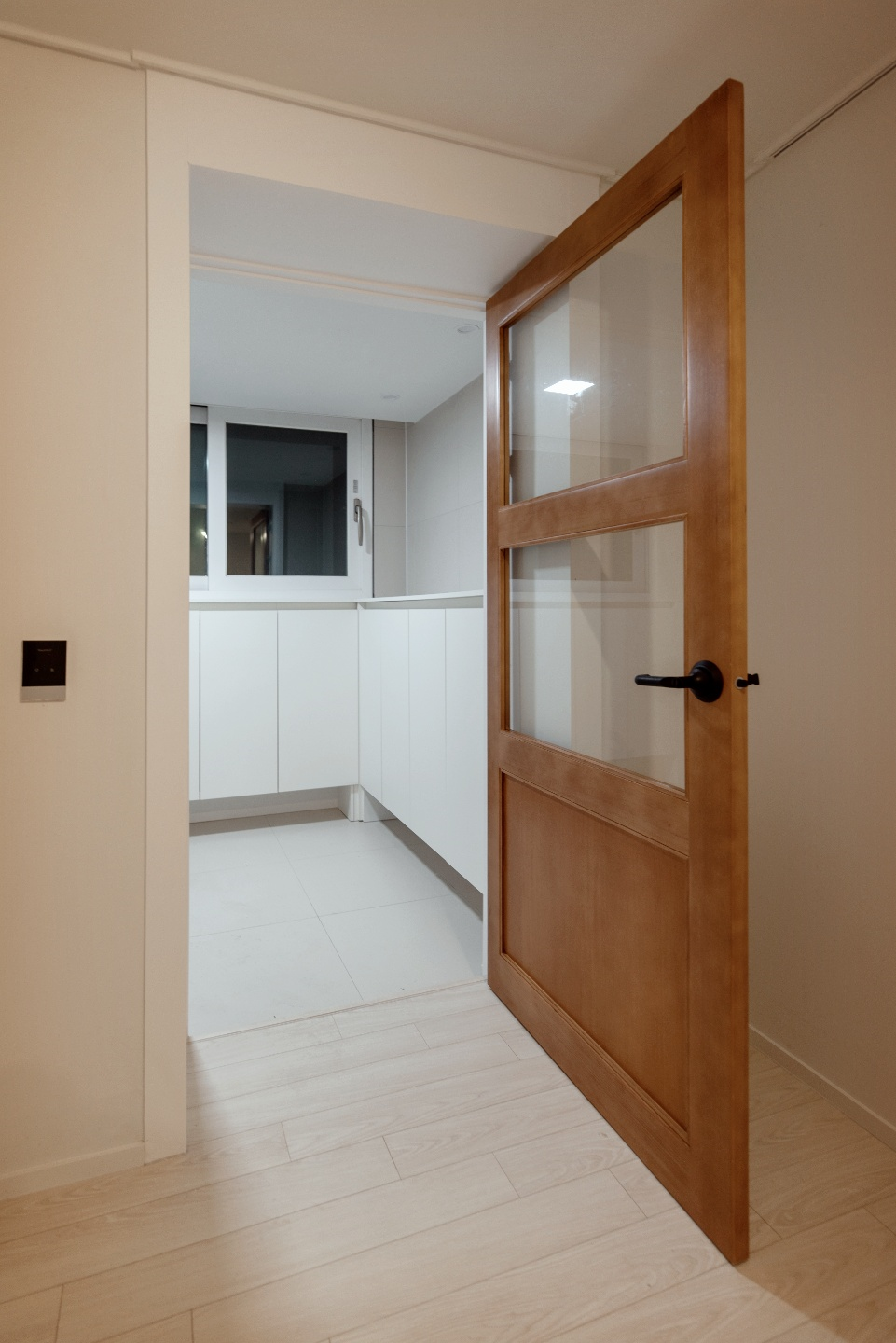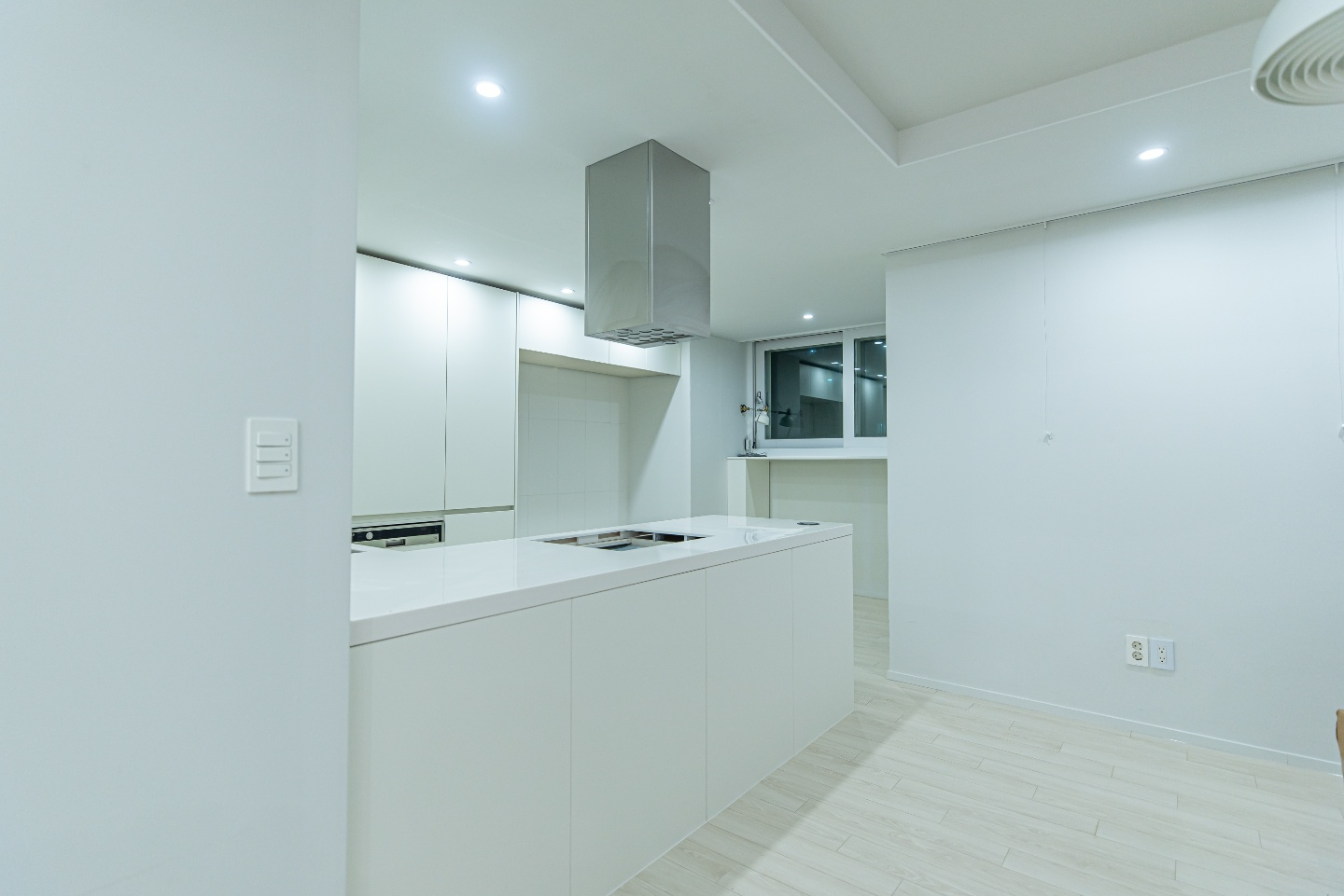평택 코아루 아파트의 고객께서는 워낙 깔끔하고 군더더기없는 Flat한 화이트 톤을 선호하셔서 그에 맞는 심플한 인테리어를 연출했습니다.